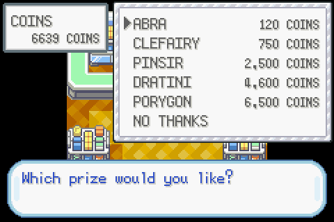 upon arriving in celadon, i knew exactly what had to be done. i marched over to the game corner and got ready for my very first casino-based shiny hunt.