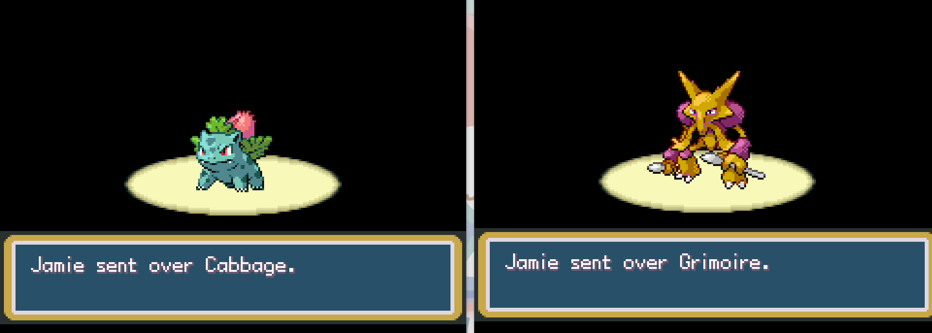 i shifted focus to doing the trade with the use of an emulator. i had NO idea if it would be possible, but i figured i'd give it a shot. since i had a copy of firered, i plopped it on my pc and got to researching. (i also seized the opportunity to make a backup of all of my leafgreen badgequest shinies!) anyway, i soon found a guide online which taught me how to do the process with two separate windows of the visualboyadvance emulator.