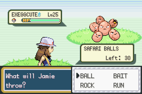 ...but encounters in the safari zone aren't like normal pokemon encounters. you can't battle any of the pokemon that you run into within the safari zone. instead, you can throw bait at them OR throw rocks at them. and pokemon within the safari can very much run away forever.