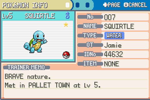 this was a pretty straightforward hunt. i saved right before picking up my squirtle at oak's lab, then soft reset a bunch of times before i met a beautiful, bright blue one with a gorgeous green shell! i was pretty nervous about it, since it was my first hunt of the challenge... and i was totally expecting an overodds hunt... but my shiny starter showed up after 5205 squirtles seen!