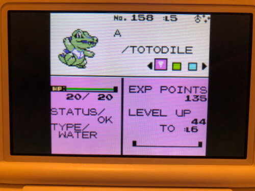 - check my pokemon party. if totodile had 21hp, i would soft reset. if he didn’t (and therefore had 20hp), i would examine him closer.