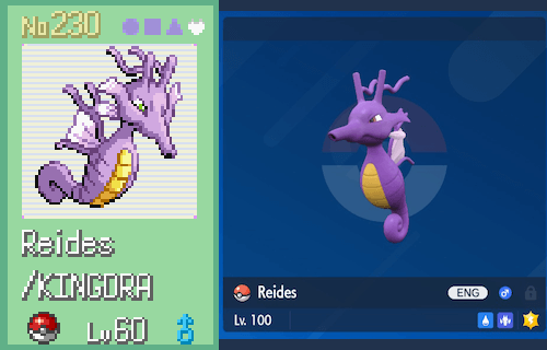 as you probably know, the most recent pokemon games feature pretty significant pokedex cuts due to the sheer magnitude of pokemon that are now available to us. this means that some pokemon are simply not featured in certain mainline games, which adds a unique element to a lot of pokemon's ribbon master journeys. re: my experience with reides, working around unobtainable ribbons wasn't exactly a new experience - after all, there were no available shadow horseas/seadras/kingdras in pokemon colosseum or pokemon xd, so i knew that my kingdra wouldn't be able to get the national ribbon (granted to purified shadow pokemon) - but it still was something i had to consider and plot out carefully as i brought him up towards the more recent generations. for example, reides was unable to get the hisui ribbon (granted for taking a photo with your pokemon in the region's photo studio), as the horsea line was not featured in legends arceus... and, for a long time, i figured that he wouldn't be able to get any of the ribbons (and marks!) featured in scarlet and violet.