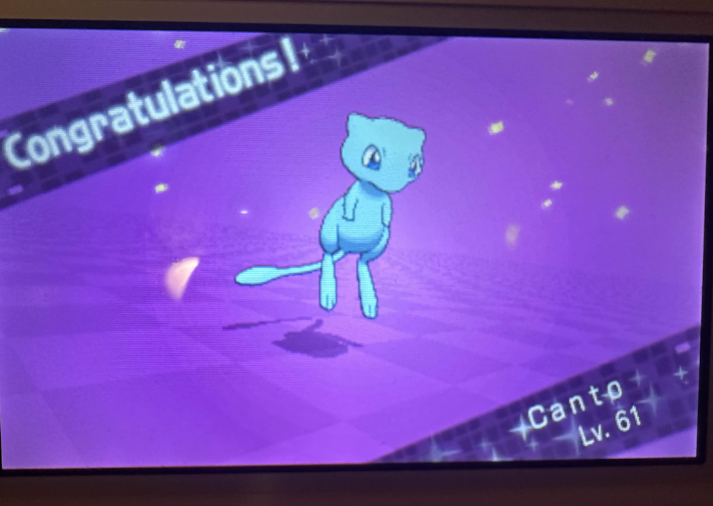 i named my shiny mew 'canto' as a reference to both poems/songs as well as the kanto region! i cherish them so much and am so grateful to have them as a member of my collection. my fingers are crossed that the mightiest mark mew event will get a re-run so that i can get the mightiest mark on them!